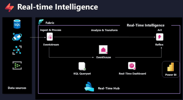 In today’s data-driven world, organizations need the ability to analyze and act on data as it flows in real time. Microsoft Fabric provides a powerful ecosystem for real-time intelligence, enabling businesses to process, store, analyze, and visualize data with minimal latency. In this blog I will introduce you to the key components that make real-time intelligence possible in Microsoft Fabric, giving you a high-level understanding of how they work together.